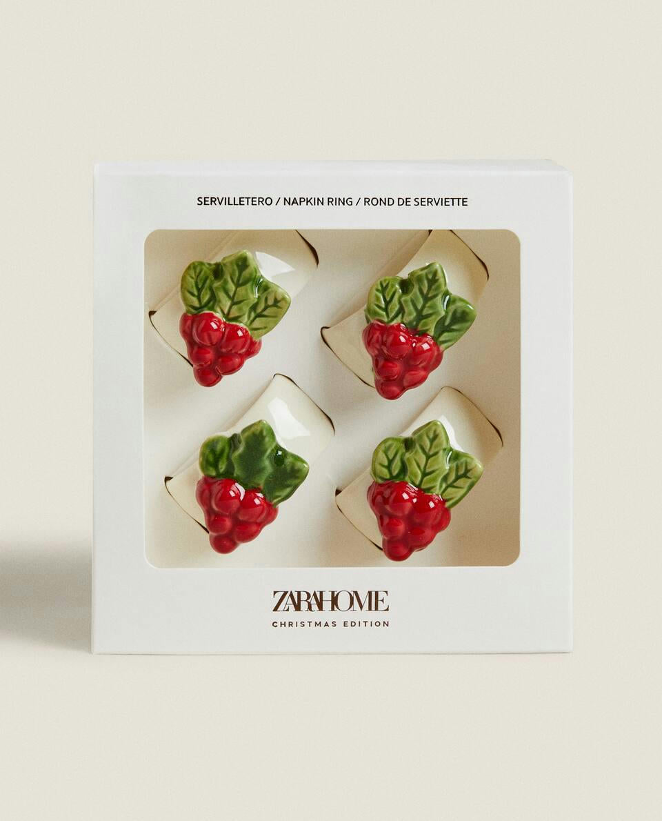 PACK OF CHRISTMAS CERAMIC MISTLETOE NAPKIN RINGS (PACK OF 4)