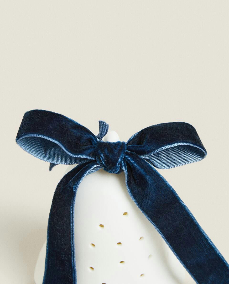 Christmas bell decoration with light and a velvet bow detail at the top.Batteries included.