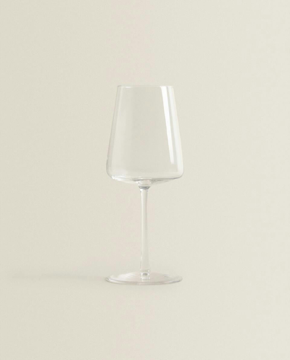 Clear crystalline wine glass featuring a contemporary conical design.