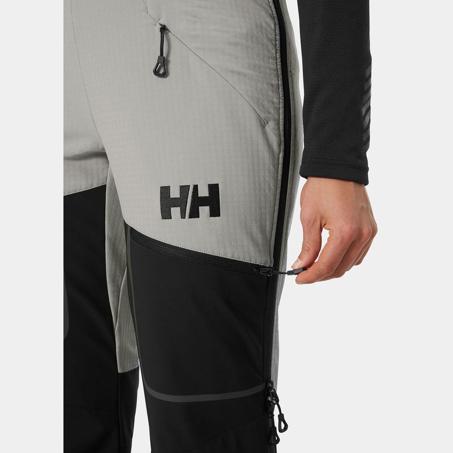 The Women's Odin Backcountry Softshell Bib Pants are the perfect choice for your backcountry ski touring adventures. Crafted from a lightweight, stretchable 4-way fabric, these pants provide you with maximum movement during long ascents and steep drops. RECCO reflectors provide added searchability in backcountry terrain. Adjustable elastic suspenders ensure a comfortable fit, while thigh pocket and D-ring offer secure storage and attachment points. We've also added a side zipper so you can regulate your temperature and easily get them on and off, along with snow gaiters at bottom legs to keep snow out while you're cruising through deep powder. For temperature regulation, we've added mechanical ventilation zippers, so you don't overheat and stay comfortable in any conditions. Well thought out details like an adjustable bottom leg, reinforcement on bottom leg, gusset in crotch for freedom of movement, and articulated knees for better comfort and fit make these pants move with you. Strategically placed hand pockets provide storage for any essentials you may need during your adventure. The perfect companion to the Odin Backcountry Softshell Jacket. which is made from the same body-mapped fabric construction.