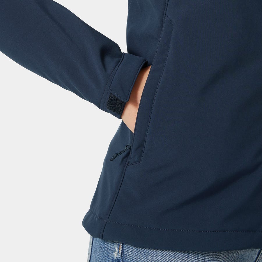 Warm, flexible, and breathable, this multifunctional women's hooded softshell jacket has a fleece backing and weather-resistant properties. The jacket is a certified bluesign product.