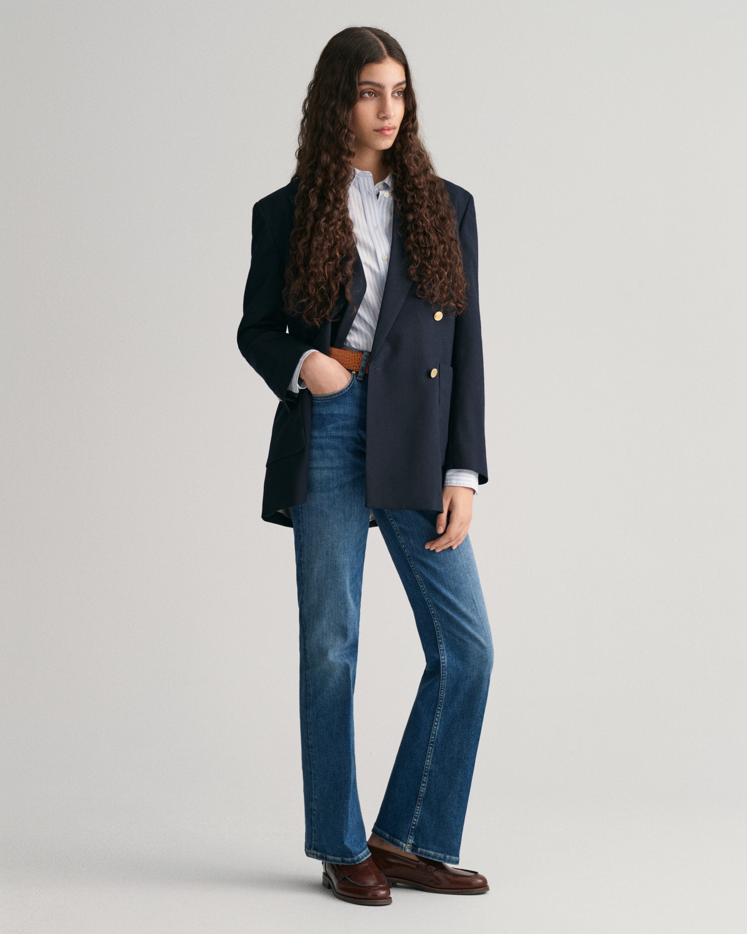 Featuring yarn-dyed stripes on crisp cotton poplin, this regular fit shirt is the perfect casual piece. Details include a point collar, curved hem, embroidery at the chest and our signature box pleat with a locker loop at the back.